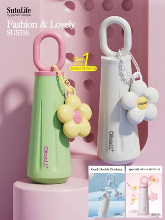 1 pièce Gourde sous vide en acier inoxydable SUS316, conçue pour les filles, élégante et pratique, bouteille d'eau portable, bouteille d'eau mignonne à grande capacité
