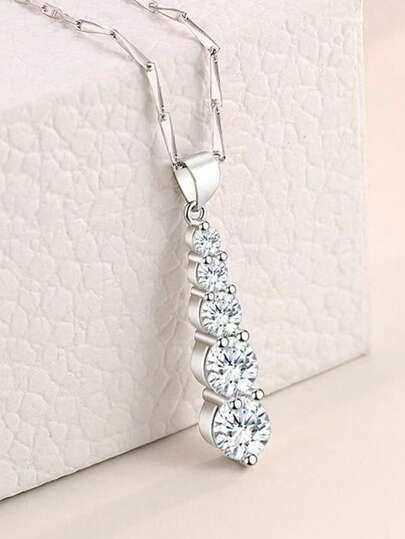 Collier pendentif en forme de larme en zirconium cubique étincelant pour femmes, style sexy et brillant, parfait pour les fêtes, les cadeaux et les mariages - Argent - Voir 1