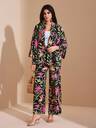 Felipe Marques Robe longue à manches longues, imprimé floral, col en V profond, froncée, ajustée. Couleur: noir. Convient pour les soirées, les vacances, les tenues décontractées en automne/hiver