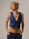 Slaydiva Blouse en denim déchiré avec nœud devant pour femme