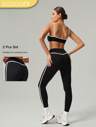 GOSOUER 2 PCS CO Ord Set Spring And Summer Women Fashion White Line Yoga Sports Bra And Legging