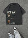 Men's Fashionable Dropping Shoulder T-Shirt With Fun Prints, Emo, 2000s Style