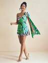 GABRIELLE NTI Designer Women Tie-Dye Printed Mesh Bodysuit With Metal Chain Straps, For Summer, Holiday, Festival