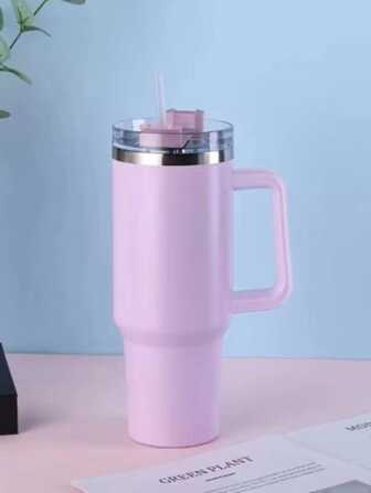 1pc 1200ML Stainless Steel Double-Layered Vacuum Outdoor Sports Car Cup With Spray-Painted Exterior, Multiple Color Options And A PP Straw. Cup Brush, Straw, And Silicone Bottom Pad Accessories Can Be Purchased Separately.