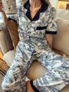 LuxeNights Contrast Piping Satin PJ Set / Pajama Set