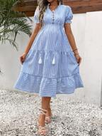 Women's Solid Color Layered Ruffle Elastic Waist Vacation Skirt