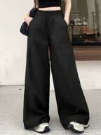 SHEIN BAE Women Casual Office Solid Color Wide Leg Pants