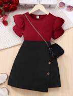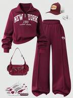 2pcs/Set Tween GirlsCasual New York Letter Pattern Stand Collar Sweatshirt And Shorts Set, Warm For School, Commute, Outing, Suitable To Pair With Jacket, Vest, Coat, Autumn/Winter