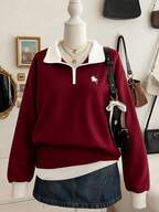 Resyla Women's Striped Patchwork Shirt Collar Drop Shoulder Long Sleeve Casual Sweatshirt