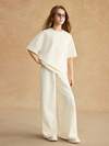 Firerie Kids Firerie Kids 2-delige set van tween-meisjes casual koffiekleurige geplooide lange mouwen gebreide top en flared broek, geschikt voor thuis, buiten, op reis, op de luchthaven en voor casual dagelijkse kleding.