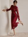 Anewsta Elegante bandage kanten patchwork zeemeermin zoom sexy lange mouwen formele jurk voor dames, bordeauxrood, geschikt voor banketten en verjaardagsfeestjes in de winter
