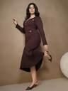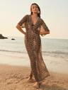 Anewsta Savoree Bruine kerstfeestjurk voor dames, romantische elegante getailleerde jurk met bloemenprint en open rug