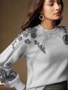 Anewsta Vrouwen Bloemen Versierd Mesh Peplum Lange Mouw Elegante Jurk