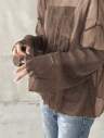 FRIFUL Dames effen ronde hals, verlaagde schouder, lange mouwen, losse sweatshirt met mesh-paneel en geplooide zoom, voor herfst/winter