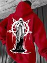 1 stuk herenhoodie in grote maten, grijs, thermisch gevoerd, met autoprint, casual outdoorkleding, herfst/winter, top met lange mouwen