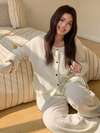 Lazeform Plus Size Soft Knit Floral Mesh Contrast Color French Casual Loungewear/Sleepwear Pajama Set, Winter Clothes