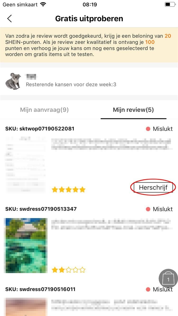 A: Hallo, de winnaars van de gratis proef worden willekeurig geselecteerd via ons systeem, waarbij rekening wordt gehouden met de verschillende kredietgegevens van uw SHEIN-account en de integriteitsgeschiedenis van de proef, enzovoort. Het heeft ook te maken met het aantal Winnaars per week, dat beperkt is. Maar laat je niet ontmoedigen, je kunt volgende week weer solliciteren! We wensen je veel succes!