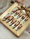 10 stuks slanke, hooggehakte Koreaanse stijl gouden 3D decoratieve chroom bruin groene Y2K volledige dekking nep nagelset om je liefde te uiten, Europese stijl punk cool meisje bruine kattenogen, Boheemse prinses stijl decoratieve muziekfestival Nordic volledige dekking patch nagelset, geschikt voor jongens en meisjes, wordt geleverd met 1 mini nagelvijl en 1 dubbelzijdig plaklabel.