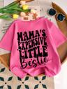 Set van 2 T-shirts met korte mouwen en wijde broek met letter A-print voor meisjes, zacht en machinewasbaar, lente/zomer