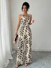 SHEIN Clasi Dames effen jumpsuit met wikkelstrik en korte mouwen, zomer