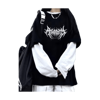 Attitoon Punk Wing, hart- en kruispatroon V-hals T-shirt met lange mouwen, geschikt voor vrouwen, Halloween, Y2K-stijl, streetwear, vintage, terug naar school, retro, herfst, vakantie, casual outfits, herfst/winter, hiphop, stijlkern esthetiek, gothic, cybergothic