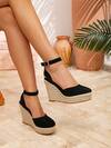 Damesschoenen met plateauzool en sleehak, minimalistische espadrilles met enkelbandje en sleehak van imitatieleer, zomerse resortschoenen met abrikooskleurige bandjes, vierkante neus en hak van 8 cm, comfortabele geweven schoenen van stro met open details, schoenen in maat 34-43 en plusmaten, damespumps met hoge hakken, damessandalen met hoge hakken, elegante damesschoenen