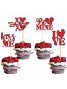 24pcs Happy Valentine's Day Cupcake Toppers Glitter Sweet Heart Cupcake Picks For Valentine's Day Theme Wedding Party Cake Decorations Supplies