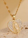 1pc Virgin Mary Heart Necklace, Inlaid With Colored Zirconia, 18k Golden Plated Stainless Steel Chain, Suitable For Women's Daily Matching, Perfect Gift For Friends(Attention: The Color Of The Embedded Cubic Zirconia Is Random) Valentines,Mom,Mother,Mother's Day,Gift