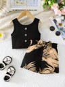 2pcs Baby Girls Rose Print Ruffle Trim Long Sleeve Top And Casual Pants Set, Spring/Fall Outdoor Casual