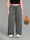 Winter Plus Size Women's Thermal Lined Casual Sweatpants, Drawstring Waist, Wide Leg, Outdoor Running Workout Pants With Multiple Pockets, Suitable For -5°C, Autumn/Winter