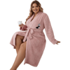 1pc Women Solid Color Hooded Belted Plush Sleepwear Robe, Cozy And Warm For Autumn/Winter, Fall