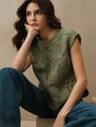 Anewsta Blusa elegante de mujer con mangas abullonadas, decoración de flor y color malva