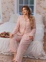 CottageSlumber Conjunto de pijama de cárdigan con cuello de volantes de burbujas florales y pantalones para mujer, ropa de otoño e invierno