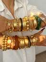 3 piezas/1 pieza Elegante brazalete de resina sólida en arco de color burdeos y beige de estilo vintage con múltiples elementos, brazalete ancho abierto de CCB cuadrado, joyería de varias capas adecuada para mujeres, otoño/invierno, adecuada para fiestas, citas, reuniones, galas, uso diario, joyería versátil, excelente opción de regalo para Halloween, Navidad, Año Nuevo