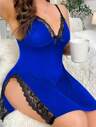 2 piezas Camisón con abertura lateral romántica, decorado con lazo y parches de encaje