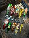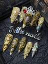 10 piezas de uñas postizas elegantes y románticas de estilo hecho a mano, reutilizables, de acrílico, en forma de stiletto, de color azul y plateado con efecto de ojo de gato, con diseño 3D de metal, dorado, cromado, con estrellas y lunas, con colgante de sol y estrella, para uso diario para niñas y mujeres, con 1 lima de uñas mini y 1 hoja de pegatinas adhesivas
