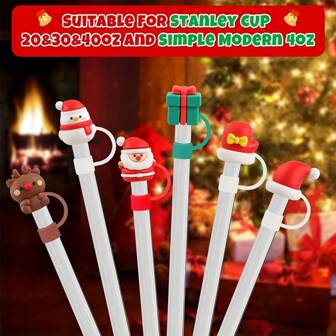 1/5 piezas cubiertas de pajitas navideñas lindas, tapones de silicona reutilizables a prueba de polvo para pajitas de 7-8 mm, accesorios de decoración para tazas