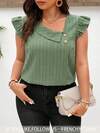 SHEIN Frenchy Camisa casual de mujer talla grande con diseño de botones, manga corta y cuello asimétrico de unicolor