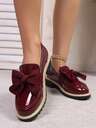 2025 Otoño/Invierno Nuevos Mocasines de Mujer de unicolor con Decoración de Lazo, Puntera Puntiaguda de Cuero Brillante