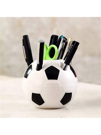 1 pieza, Soporte para lápices y bolígrafos con forma de balón de fútbol, también se puede usar como soporte para cepillo de dientes, decoración de escritorio para el hogar, regalo para estudiantes, de vuelta a la escuela, estuche para lápices, mochila escolar