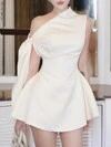 Vestido corto y minimalista de mujer en color liso, con tirantes de lazo y sin mangas, de color claro