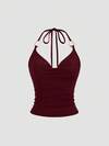 Sweetra Nueva Parte Superior de Mujer con Tirantes Anudados y Decoración de Anillo Metálico Versátil al Estilo Y2K