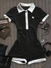 Attitoon Mono de cuello de polo con gráfico de logo pequeño de caballo en estilo minimalista casual, adecuado para otoño/invierno, estilo versátil, vintage, universitario, sexy, lindo, Y2K, chica de coco, bohemio, hippie, festival de música