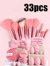 Un conjunto de 33 brochas de maquillaje (con una bolsa de almacenamiento con cordón), que incluye borla de maquillaje, esponja de maquillaje, brocha de colorete, brocha de base, brocha de sombra de ojos, brocha de contorno, brocha de ojos, cepillo de pelo suave, brocha de colorete, set de brochas de maquillaje profesional, set de brochas de maquillaje para mujeres y set de brochas de lavado de cara, set de brochas, kit de brochas de maquillaje, set de brochas de maquillaje, set de maquillaje completo, set de brochas de maquillaje, kit de maquillaje completo, kit de brochas, set de brochas de maquillaje, set de regalo de maquillaje