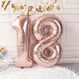 1 pieza Globo de foil con números y letras en color oro rosa, decoración para fiesta de cumpleaños, boda o celebración