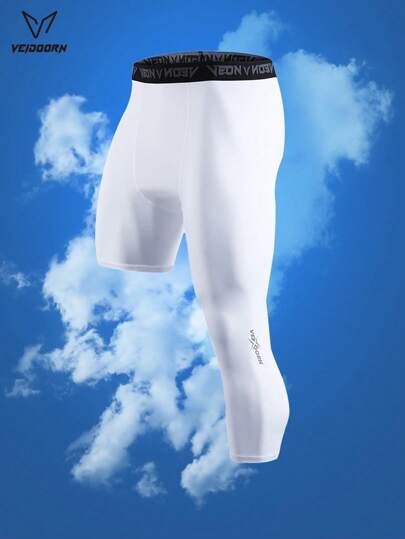 veidoorn 1pc Unisex High Elasticity Comfortable Fitness Compression Pants, Asymmetrical Long And Short Legs Design For Basketball, Running, Sports Leggings - White - View 1