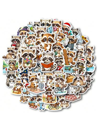 56pcs/Set Animal Stickers, Raccoon Pattern Sticker Pack, Creative Decals For Festivals Cheering And Party, Decorative DIY Gifts, Artistic Stickers For Diary, Laptop, Notebook, Water Bottle, Phone Case, Aesthetics Stickers For Teens Adults, School Supplies - Multicolor - View 1