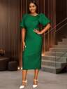 Elegant Fitted Party/Graduation Dress, Red & Green Color Block Design, 3D Floral Button Long Sleeve, Suitable For Dates, Parties, Weddings, Bridesmaids, Graduations, Wedding Guests, Autumn Women's Wear, Back To School Christmas Party Dress, Fashionable Evening Gown Series