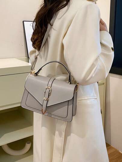 Belt Decor Flap Handbag Shoulder Bag - Light Grey - View 1