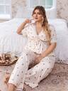 SHEIN Plus Size Women Ditsy Floral Lace Trim Long Sleeve Pajama Set